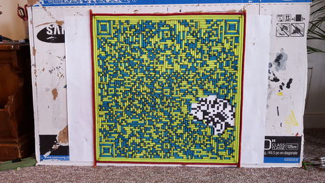 A QR Code - after a little research I learned that the reader have a high amount of digital correction...
